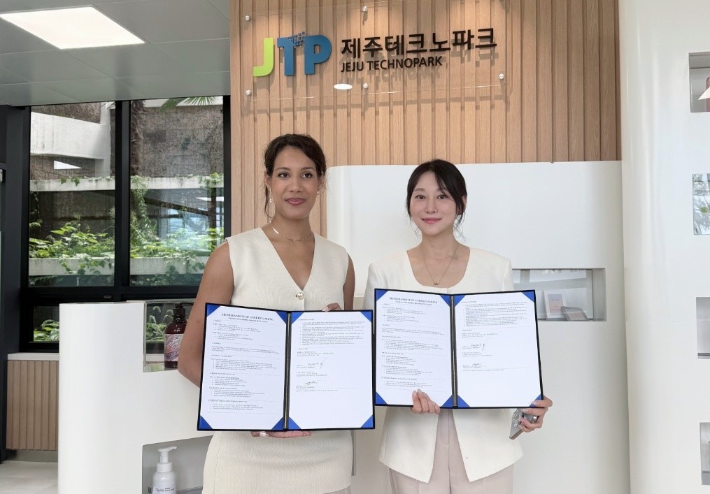 제주산학융합지구 입주 기업으로 제주 청정 원료 기반 클린 & 비건 화장품 브랜드 '더퓨어로터스'를 운영 중인 더로터스㈜가 지난 15일 제주를 방문한 프랑스 바이어 멜리아 제이 측과 10…